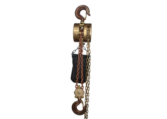 Blok Rantai berisi rantai pengangkat, rantai tangan, dan kait pencengkeram.Kebanyakan blok rantai dioperasikan dengan menggunakan listrik, tetapi blok rantai manual juga dapat digunakan.Pertama, blok rantai harus dihubungkan ke beban melalui kait pencengkeram.Kemudian saat rantai tangan ditarik, rantai mengencangkan cengkeramannya pada roda dan membentuk lingkaran di dalam mekanisme yang menyebabkan tegangan yang mengangkat beban dari tanah.